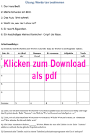 Arbeitsblatt Wortarten Bestimmen