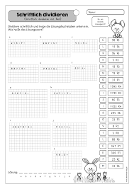 Klassenarbeiten mit musterlösung zum thema schriftliche multiplikation und division vertiefung grundrechenarten. Schriftliches dividieren arbeitsblatt rechenwiederholung mit lösung dividieren durch gemischte zehner textrechnung mit schluss brigitte zauner pdf 2 2009 divisionen für mehrer tage 5 lustbetonte arbeitsblätter zum üben der schriftlichen division im zr 100 000 ohne rest. Bei fehlversuchen werden etwaige fehler oder fehlende eingaben als hinweis rot unterstrichen.