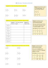 Material für den unterricht an der realschule material für den unterricht in der gemeinschaftsschule. In diesem übungsmaterial geht es zunächst darum einfachere plus und minusaufgaben im rahmen der bruchrechnung zu bearbeiten so müssen hier. Zwei oder mehr brüche erhalten durch kürzen oder erweitern denselben nenner.